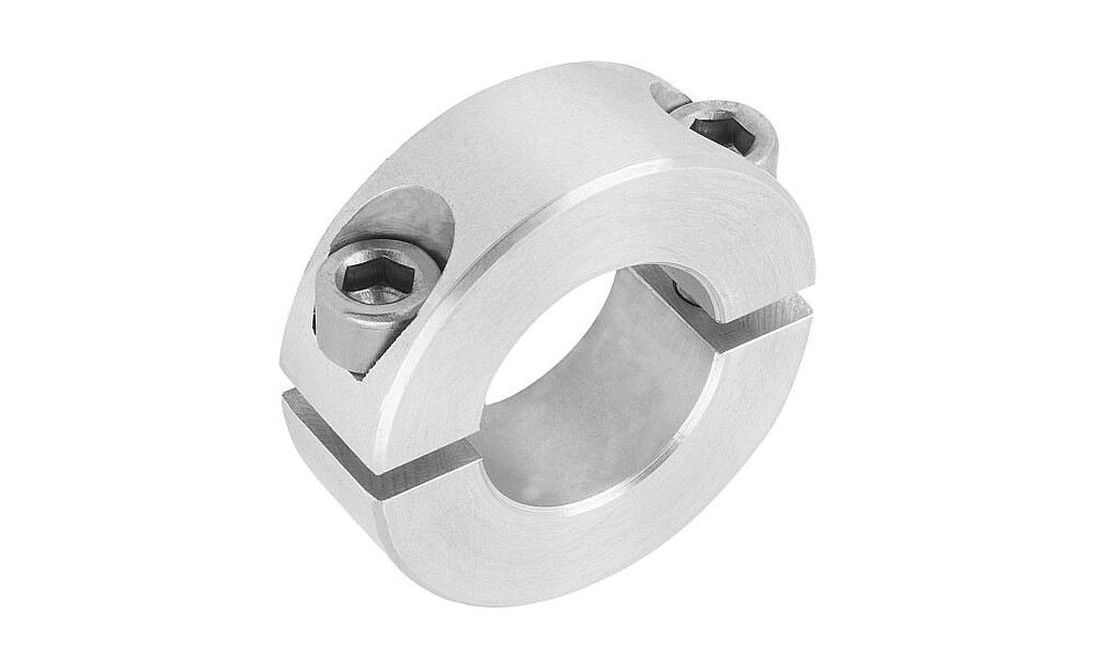 Klemmringe geteilt umschließen die Welle mit einer gleichmäßigen Verteilung der Klemmkräfte. Dies führt zu einer maßgenauen Passung und sehr großen Haltekräften ohne die Welle zu beschädigen.