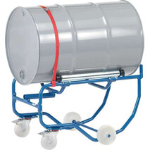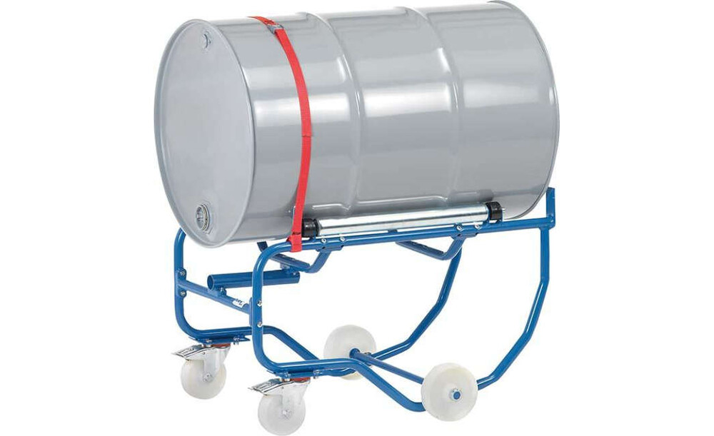 - Pulverbeschichtung: RAL 5007 blau Ausführung: Mit Stahlrollen (Ø 40 x Länge 500 mm) zum Drehen des Fasses, besonders für dünnwandige Fässer geeignet.