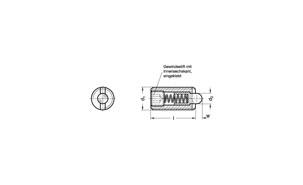 FEDERNDES DRUCKSTÜCK VERSTÄRKTE FEDERKRAFT D=M06 L=20, STAHL, KOMP:BOLZEN AUS STAHL