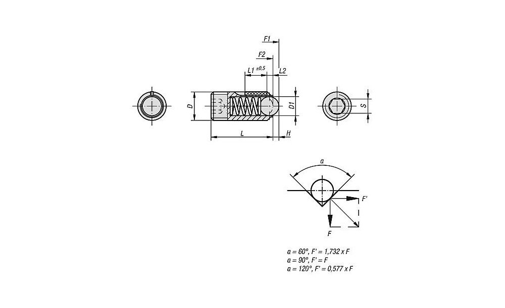 FEDERNDES DRUCKSTÜCK STANDARD FEDERKRAFT, MIT GEWINDESICHERUNG D=M04 L=10, STAHL, KOMP:KUGEL AUS STAHL