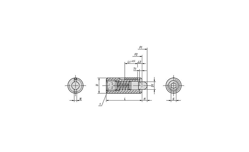 FEDERNDES DRUCKSTÜCK STANDARD FEDERKRAFT, MIT GEWINDESICHERUNG D=M12 L=28, STAHL, KOMP:BOLZEN AUS POM