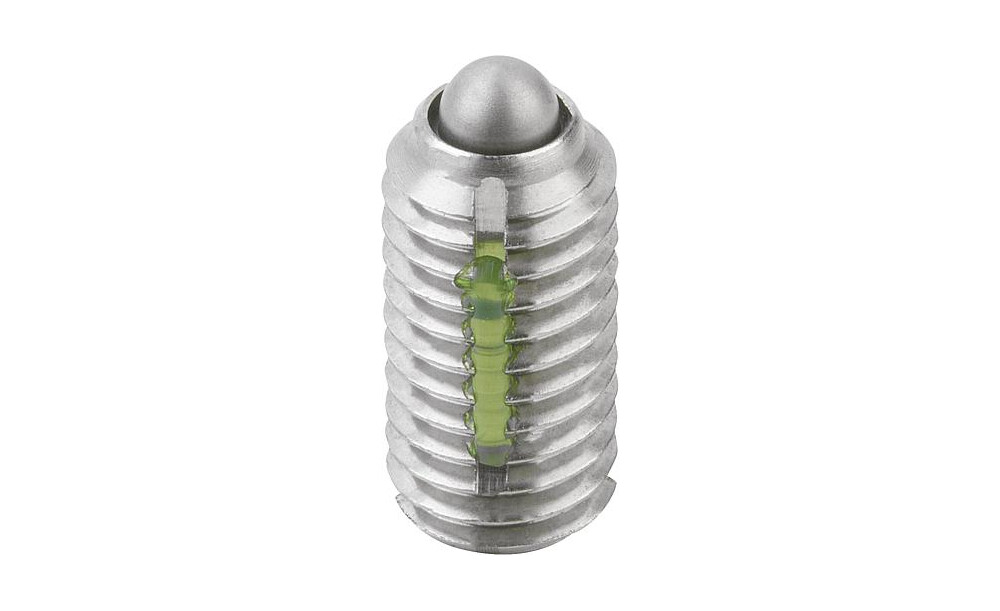 FEDERNDES DRUCKSTÜCK LEICHTE FEDERKRAFT, MIT GEWINDESICHERUNG D=M04 L=9, EDELSTAHL, KOMP:BOLZEN AUS