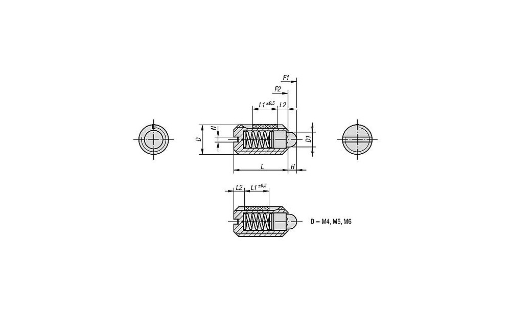 FEDERNDES DRUCKSTÜCK VERSTÄRKTE FEDERKRAFT, MIT GEWINDESICHERUNG D=M08 L=16, STAHL, KOMP:BOLZEN AUS STAHL