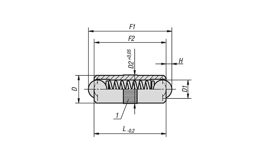 FEDERNDES DRUCKSTÜCK STANDARD FEDERKRAFT, GLATTE AUSFÜHRUNG, DOPPELSEITIG, D=...