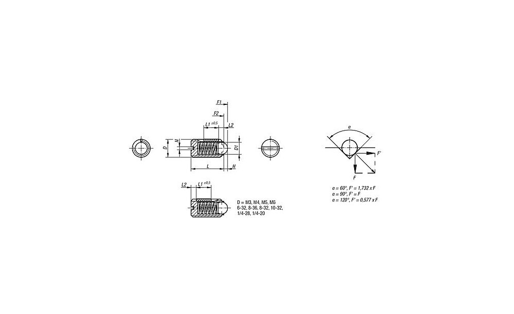 FEDERNDES DRUCKSTÜCK STANDARD FEDERKRAFT, MIT GEWINDESICHERUNG D=M04 L=9, EDE...
