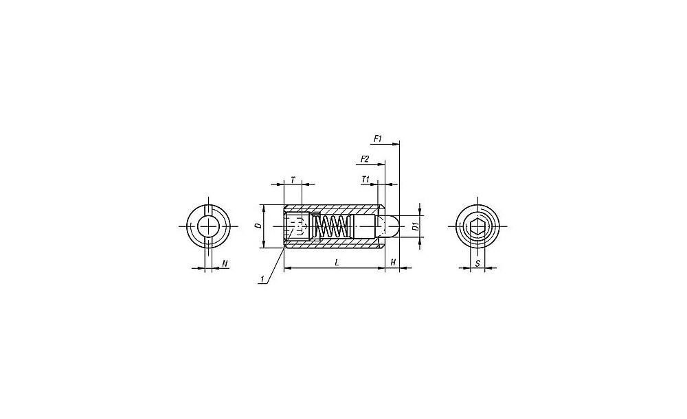 FEDERNDES DRUCKSTÜCK STANDARD FEDERKRAFT D=M08 L=22, EDELSTAHL, KOMP:BOLZEN AUS EDELSTAHL