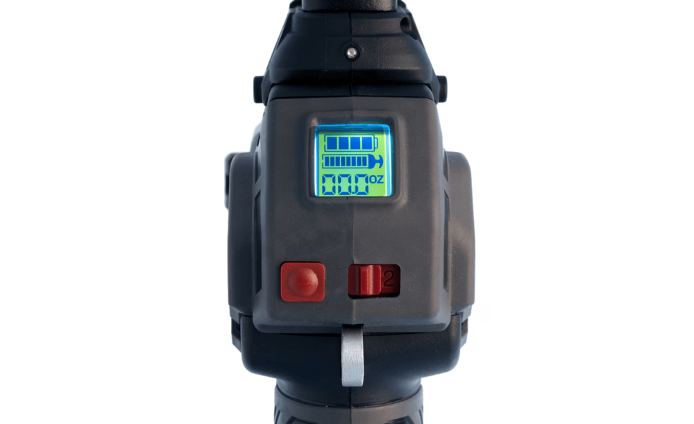 - Das Multifunktionsdisplay zeigt die Förderrate, den Batteriestand und den Fettfüllstand an. Es warnt den Bediener bei verstopften Fettleitungen und bei Ansaugverlusten.