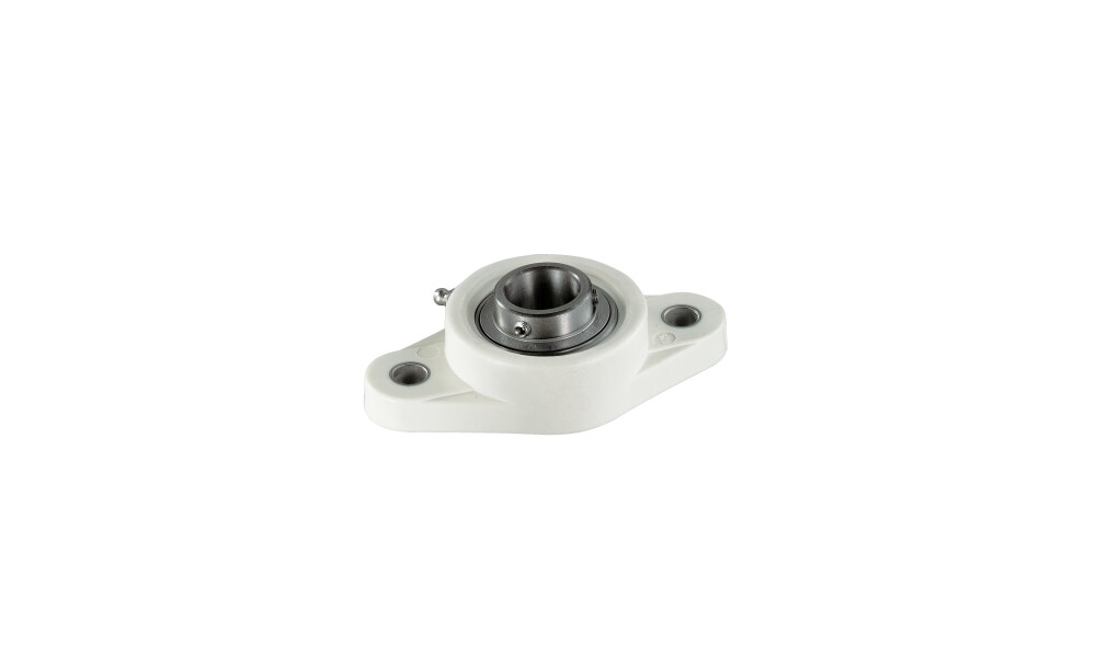 Thermoplastgehäuse,Lagereinsatz aus rostfreiem Stahl mitGewindestiften am Innenring,Dichtung mit Schleuderscheibe, lebensmitteltaugliches Fett