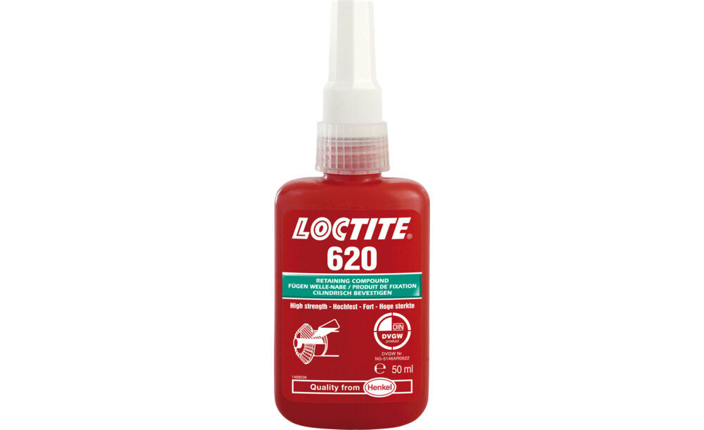 LOCTITE 620 wird zum Kleben von zylindrischen Fügeteilen eingesetzt. Das Produkt härtet unter Luftabschluss zwischen enganliegenden Metallflächen aus. Typische Anwendungen sind u.a. das Befestigen von Passstiften in Kühler, von Gleitbuchsen in Pumpengehäuse und von Lagern in Kfz-Getriebe. Besonders geeignet für Anwendungen, bei denen eine Temperaturbeständigkeit bis 200 °C gefordert wird.