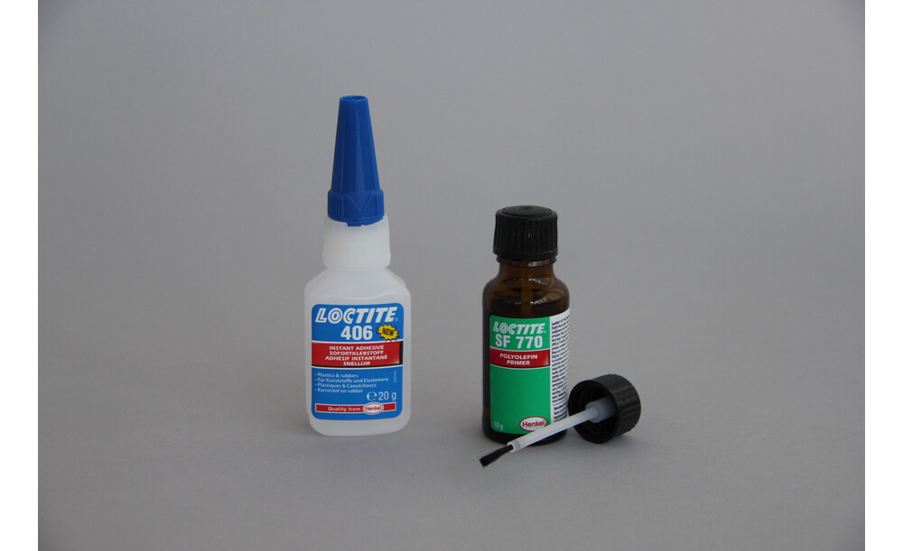 LOCTITE 406 ist ein Sofortklebstoff, der besonders für Anwendungen eingesetzt wird, bei denen Kunststoff und Gummi sehr schnell geklebt werden müssen. Dieses Produkt ist niedrigviskos. In Verbindung mit LOCTITE Primern (770 / 7239) für Cyanacrylate kann es auch für schwer zu klebende Kunststoffe eingesetzt werden.