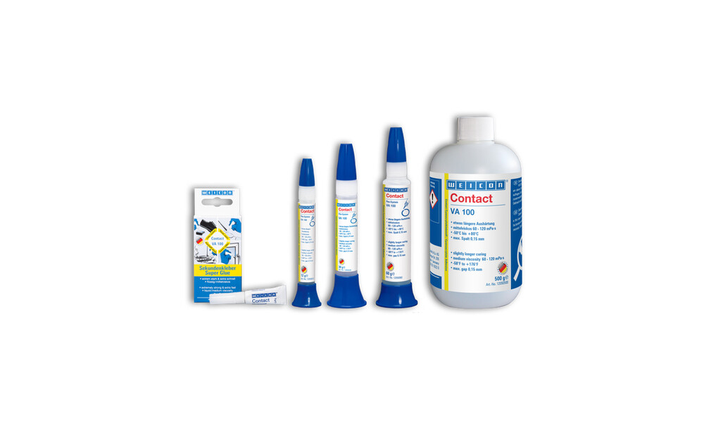 WEICON Contact VA 100 ist ein Universaltyp für die Verklebung von Metallen, Kunststoffen und Gummi, sowohl mit- als auch untereinander. VA 100 eignet sich ideal für den „Do-it-yourself“ Bereich, kann aber auch in vielen Bereichen der Industrie zum Einsatz kommen.