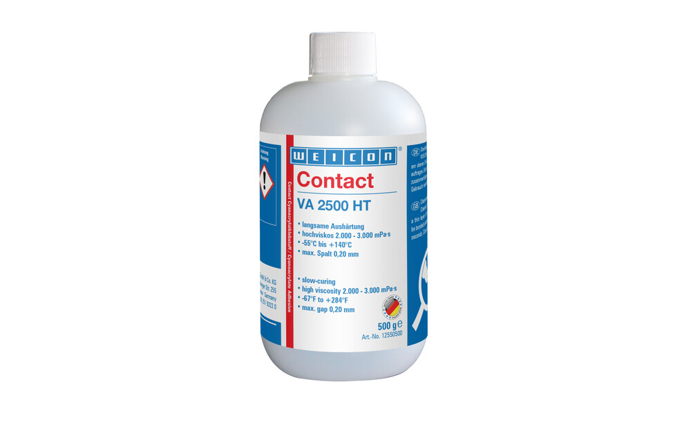 Durch die restelastische Aushärtung eignet sich WEICON Contact VA 2500 HT besonders bei wechselnden klimatischen Bedingungen. Es ist selbst gegen länger anhaltende Feuchtigkeitseinflüsse unempfindlich.