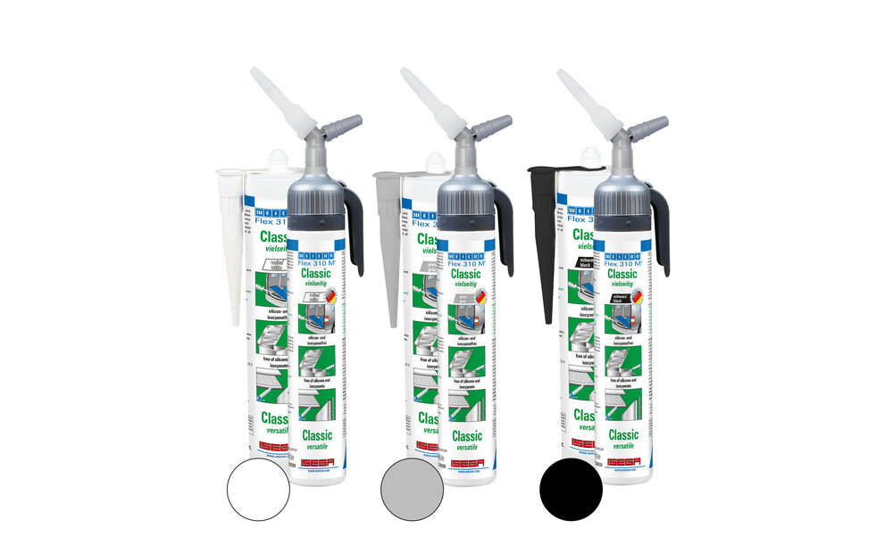WEICON Flex 310 M Classic ist haftstark, „nass in nass“ überlackierbar, schleiffähig, hat eine hervorragende Alterungsbeständigkeit, eine gute UV-Stabilität. Es ist beständig gegenüber Süß- und Salzwasser ist silicon-, isocyanat-, halogen- und lösemittelfrei.