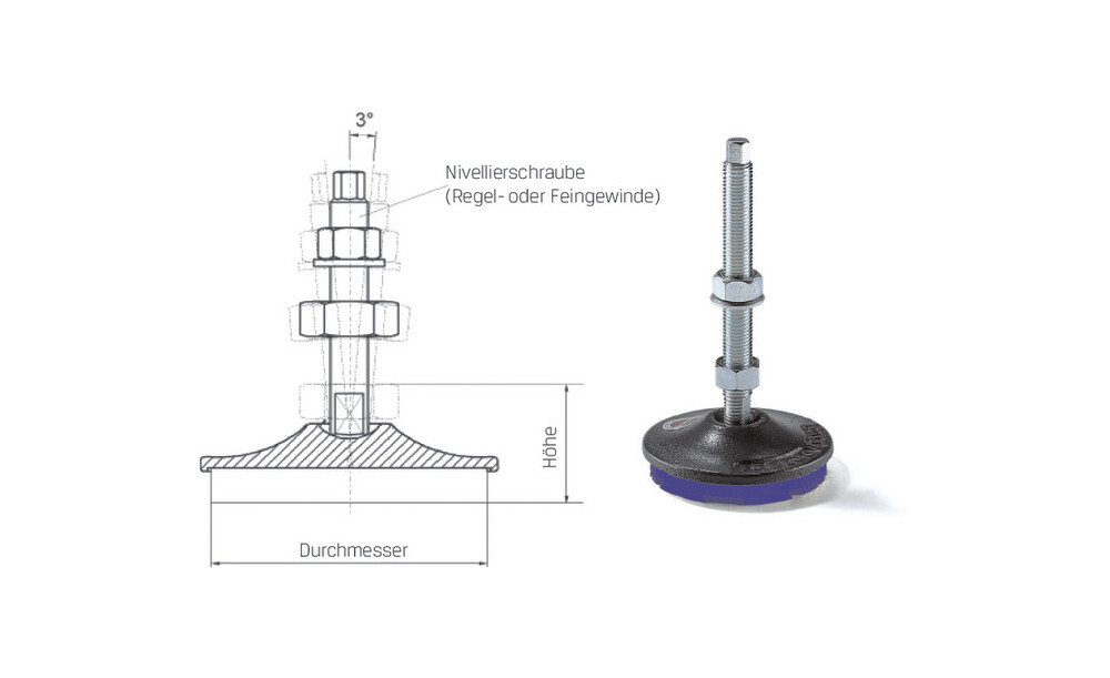 - Nivellierung über Fein- oder Regelgewindeschraube möglich