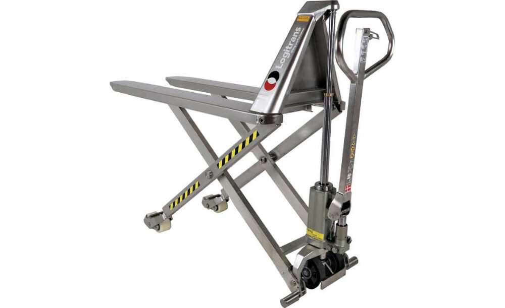 -Scherengabelhubwagen Inox Plus Mit dem Edelstahl-Scherenhubwagen können Paletten aufgenommen, transportiert und auf eine korrekte Arbeitshöhe angehoben werden. Der Edelstahl-Scherenhubwagen minimiert das Risiko von Bakterienbefall.