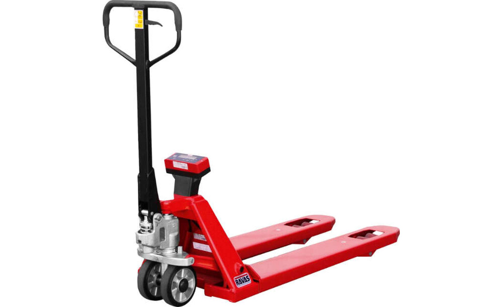 -Gabelhubwagen, Modell RAVAS 1100, mit Waage Der Gabelhubwagen hat einen Messbereich bis 2000 kg und eine Pumpe mit Schnellhub.