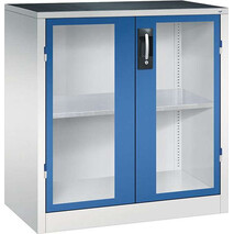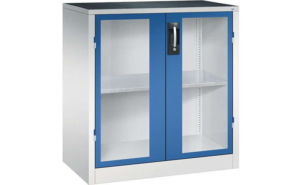 -Schwerlast-Beistellschrank, mit Flügeltüren, RAL 7035/5010 Diese Schwerlastschränke bestehen aus einer langlebigen und stabilen Stahlblechkonstruktion.