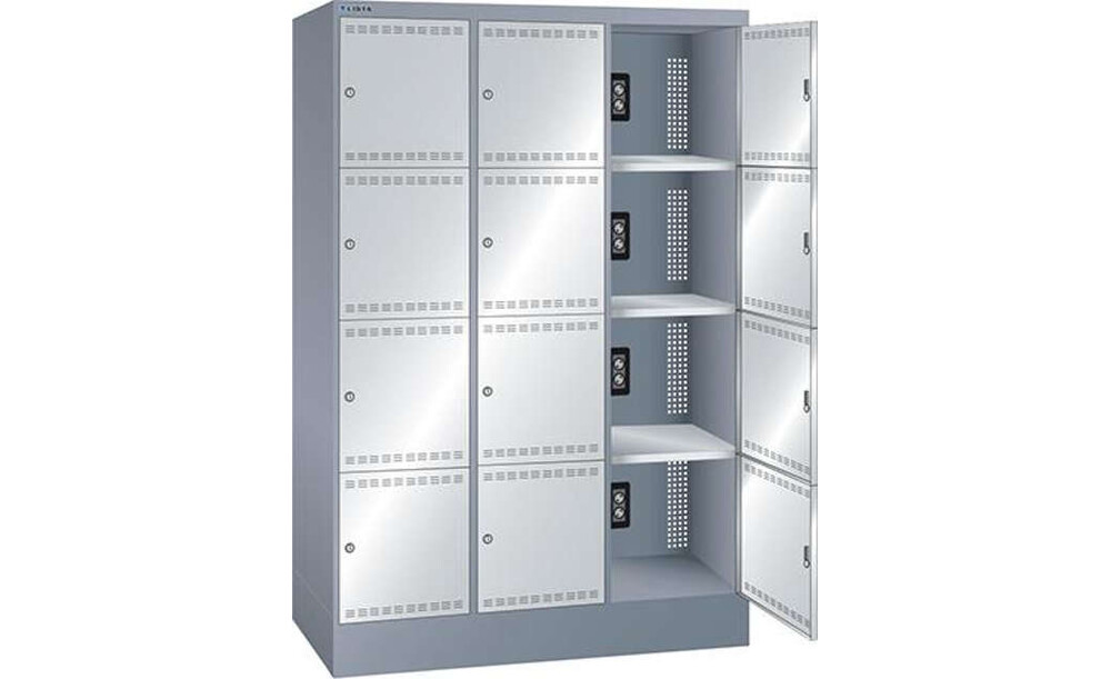 Ladeschrank LISTA, Fächer Ral 6502/7035 BxTxH 1205x585x1790mm 3x4 Fächer Schuko