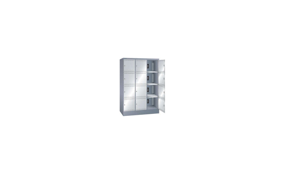 -Akku-Ladeschrank mit 12 Fächern (3x4) Diese Ladeschränke eignen sich zur personenbezogenen Aufbewahrung von akkubetriebenen Geräten aller Art. Sie können in Industrie, Handwerk, Büro, Schulen, Universitäten oder öffentlichen Gebäuden zum Einsatz kommen.