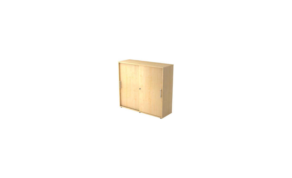 -Schiebetürenschrank Serie X mit 3 Ordnerhöhen Diese abschließbaren Schiebetürenschränke sind mit einer Mittelseite ausgestattet, die ein Durchbiegen der Platte verhindert und somit den leichten Lauf der beiden Schiebetüren garantiert.