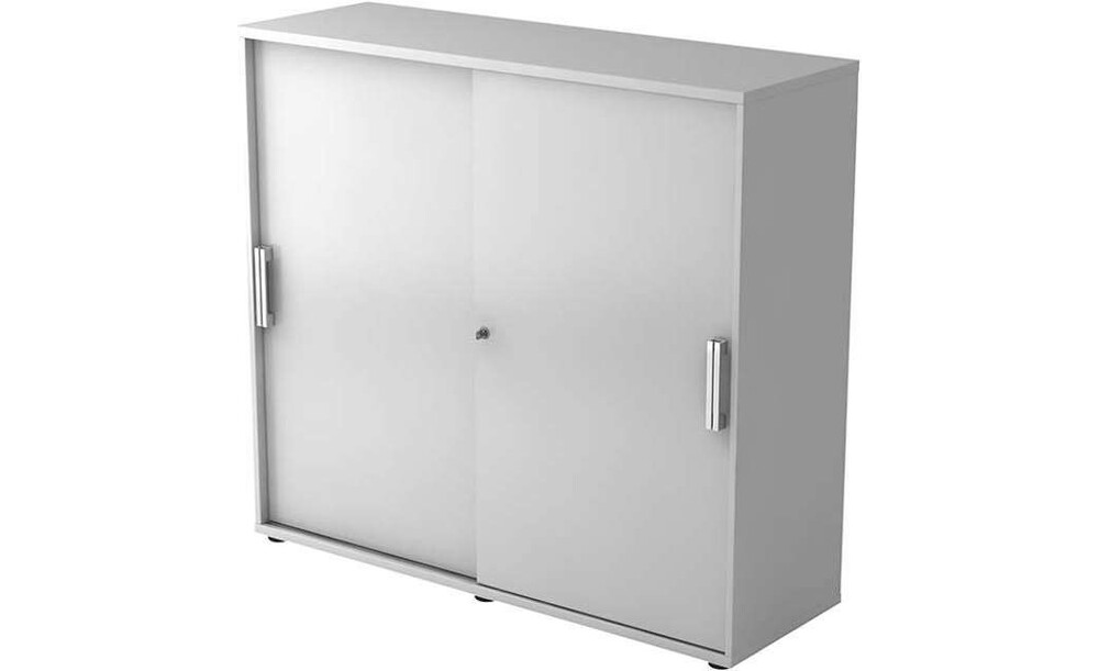 -Schiebetürenschrank Serie X mit 3 Ordnerhöhen Diese abschließbaren Schiebetürenschränke sind mit einer Mittelseite ausgestattet, die ein Durchbiegen der Platte verhindert und somit den leichten Lauf der beiden Schiebetüren garantiert.