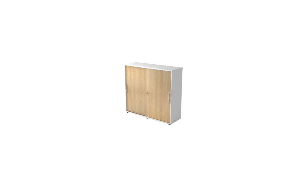 -Schiebetürenschrank Serie X mit 3 Ordnerhöhen Diese abschließbaren Schiebetürenschränke sind mit einer Mittelseite ausgestattet, die ein Durchbiegen der Platte verhindert und somit den leichten Lauf der beiden Schiebetüren garantiert.
