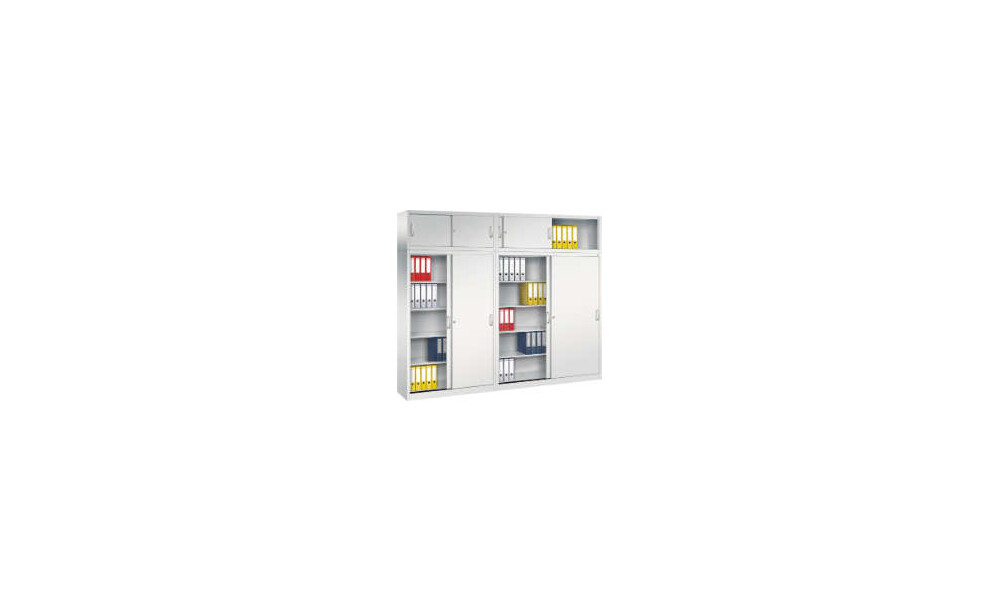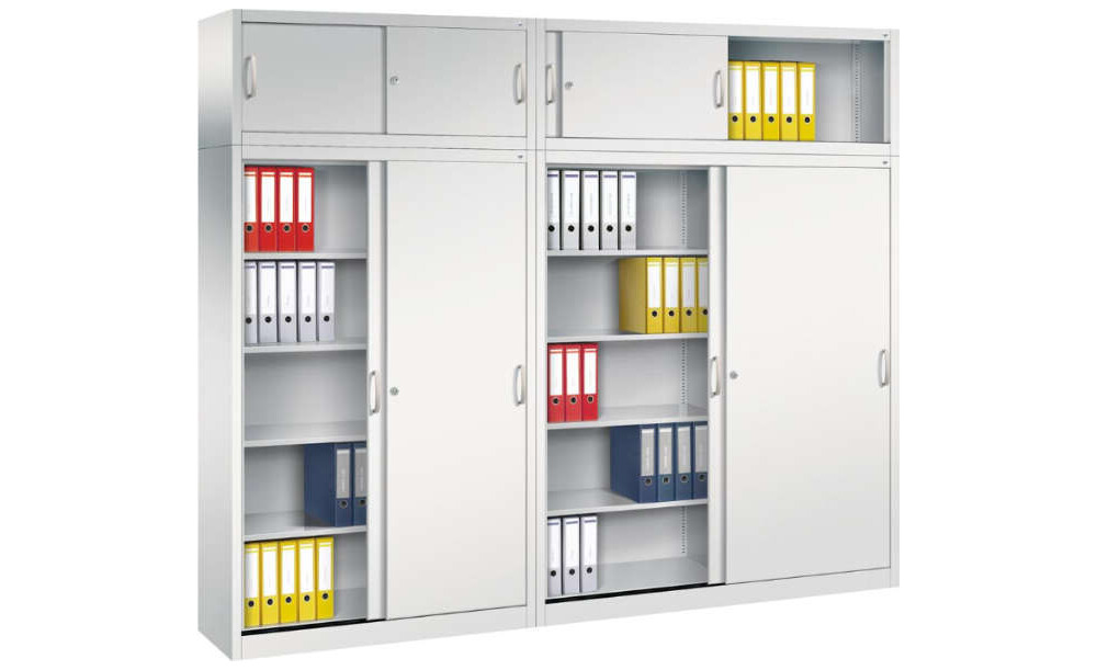 Schiebetürenschrank C+P, B1200xT500xH1950 mm RAL 7035 4 Fachböden CP