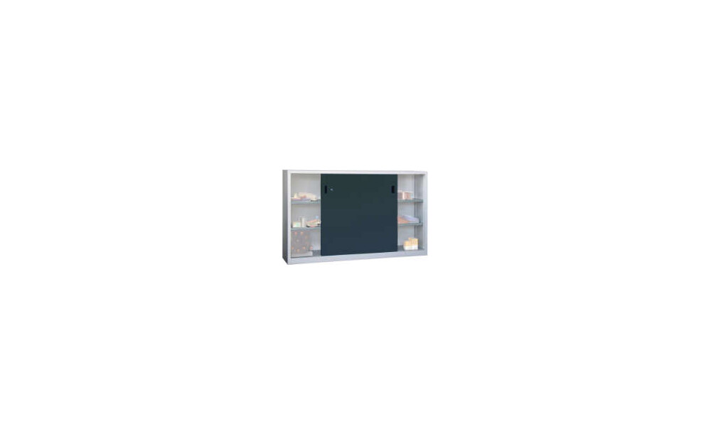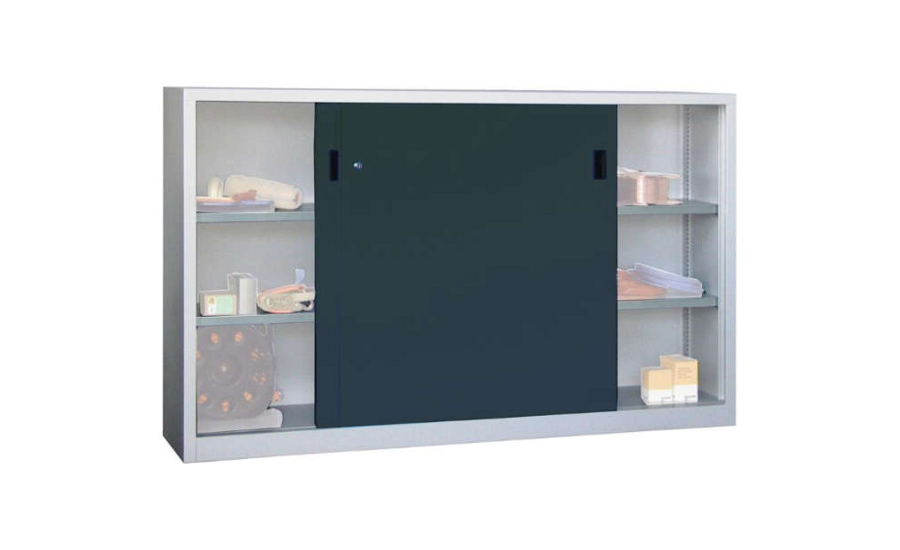 Schiebetürenschrank PAVOY, B2000xT500xH1200 mm 4 Böden verz. Mittelwand RAL 7035/7016