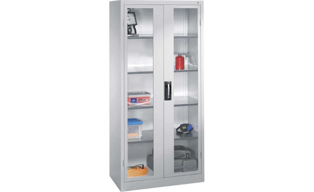 -Werkzeug- und Materialschrank (RAL 7035/7035) mit 4 verstellbaren Einlegeböden Diese Werkzeug- und Materialschränke bestehen aus einer langlebigen Stahlblechkonstruktion.