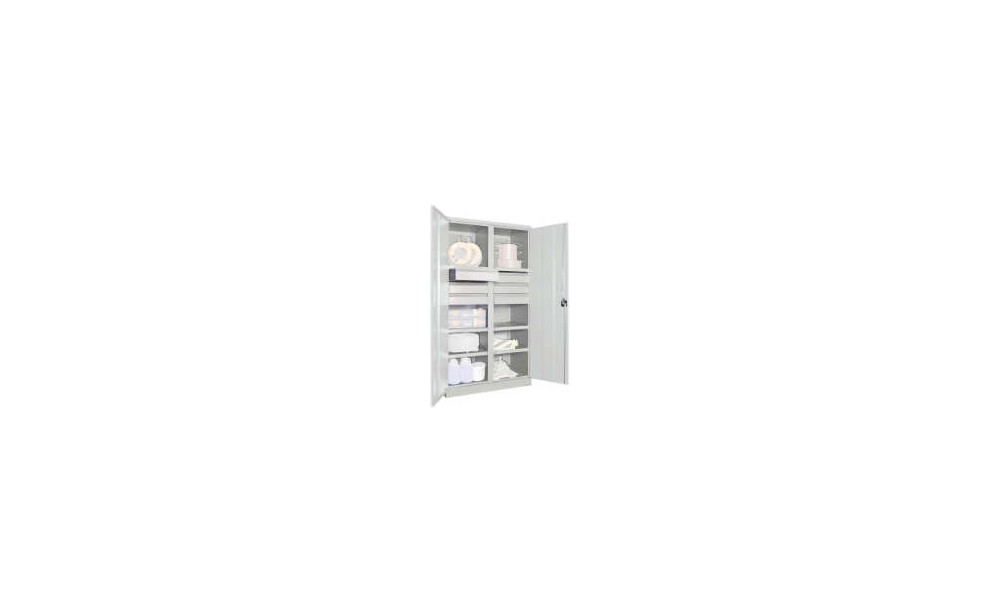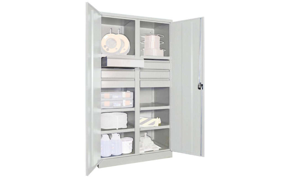 Schwerlastschrank PAVOY, m.TürenH1950xB1040xT630 mm 6 FB, SL 6 x FH 125 mm RAL 7035 Mittelwand