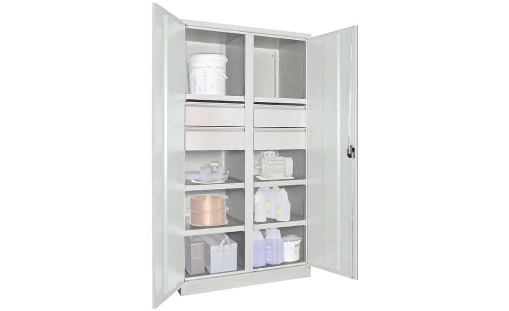 Schwerlastschrank PAVOY, m.TürenH1950xB1040xT630 mm 6 FB, SL 4 x FH 175 mm RAL 7035 Mittelwand