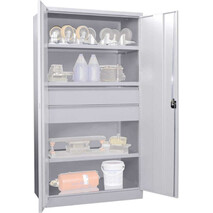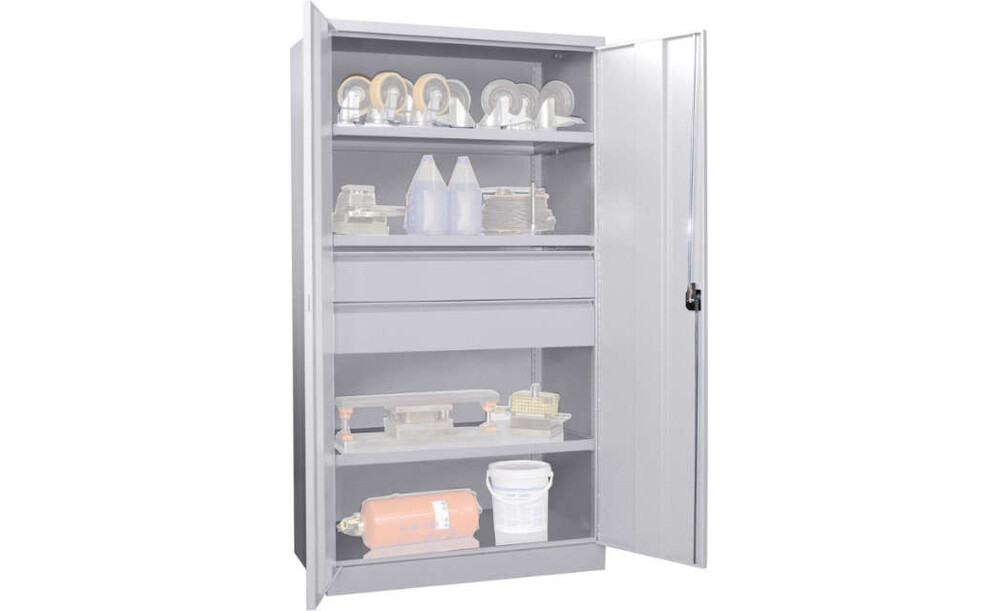 Schwerlastschrank PAVOY, m.TürenH1950xB1040xT630 mm 3 FB, SL 2 x FH 175 mm RAL 7035