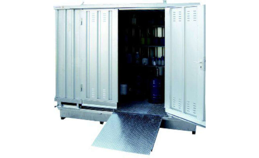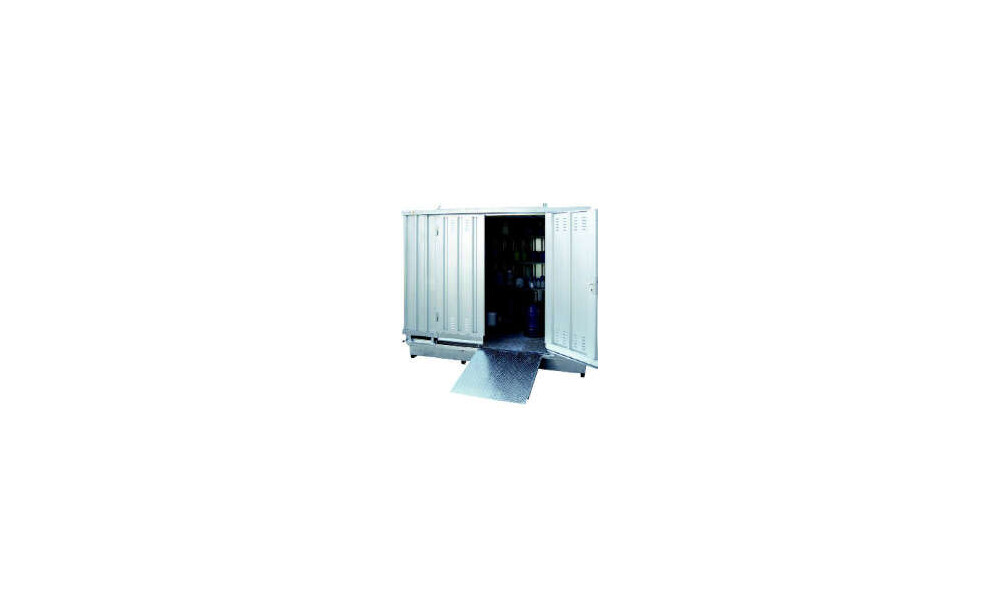 -Sicherheitslagerhaus mit natürlicher Belüftung, verzinkt Dieses Gefahrstofflager ist für die passive Lagerung von wassergefährdenden Stoffen und entzündbaren Flüssigkeiten geeignet.