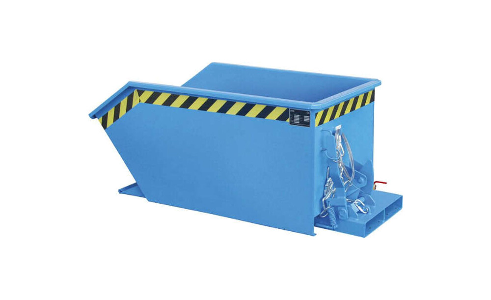 -Späne-Kippbehälter, Typ SGU, mit Lochblecheinsatz, RAL 5012 Dieser Kippbehälter ist speziell zum Sammeln und Trennen der Flüssigkeit von Feststoffen.