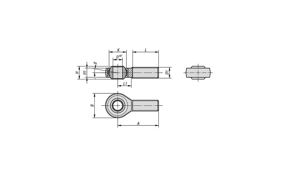 Werkstoff: Automatenstahl // Innendurchmesser d: 10 // Außendurchmesser D: 28 // Breite B: 48 // Produktart: Gelenkkopf