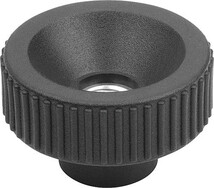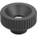 RÄNDELMUTTER, D=M10, D1=40, H=25, THERMOPLAST SCHWARZGRAU RAL7021, KOMP:AUTOM.STAHL BLAU-PASSIVIERT