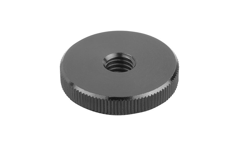 Werkstoff: Stahl. Edelstahl 1.4305. Ausführung: Stahl brüniert. Edelstahl blank. Bestellbeispiel: nlm 06120-042 Hinweis: Rändelmuttern flach M12 sind auf dem amtlichen Normblatt nicht vorgesehen.