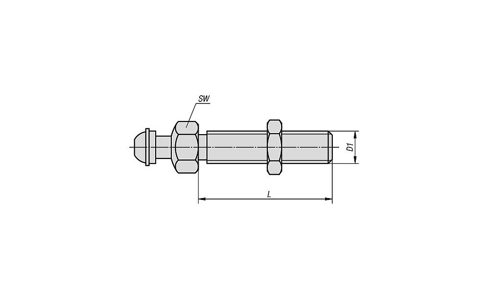 Die Höhe des gesamten Stellfußes berechnet sich aus der Länge der Gewindespindel + 30 mm.