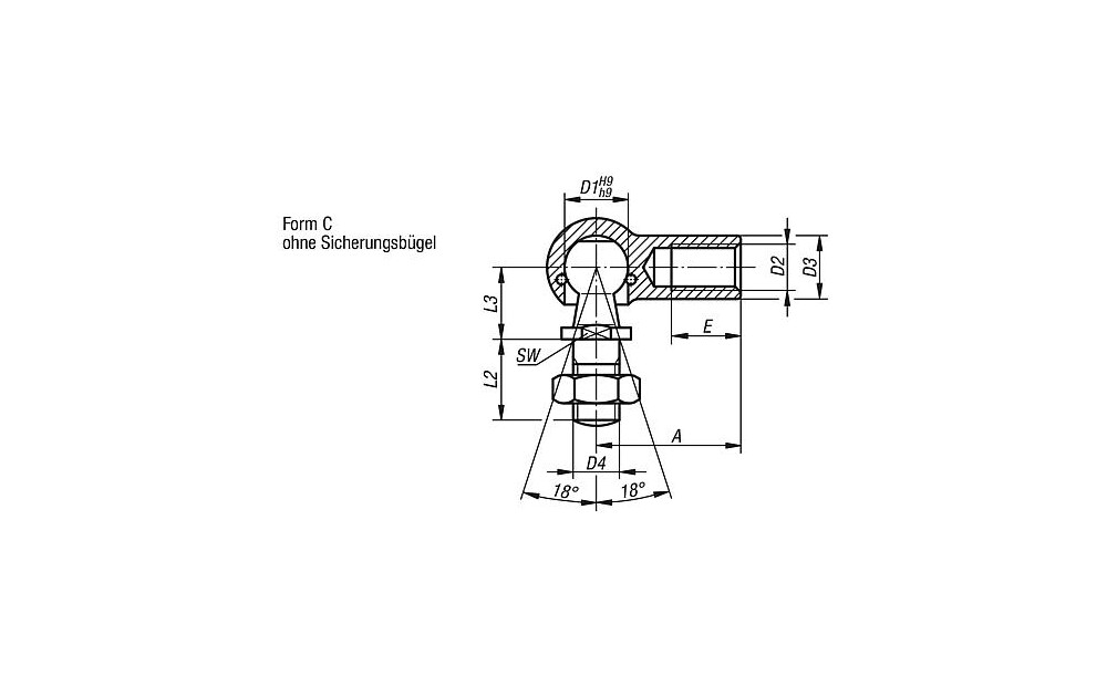 WINKELGELENK DIN71802 LINKSGEWINDE, FORM:C OHNE SICHERUNGSBÜGEL, D1=13, INNEN...