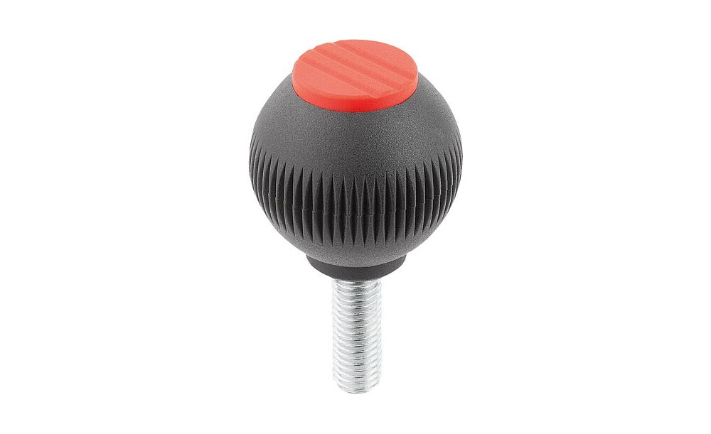 GRIFFKUGEL GR.4, D1=50 D=M12X20, THERMOPLAST SCHWARZGRAU RAL7021, KOMP:STAHL, DECKEL:ROT RAL3020