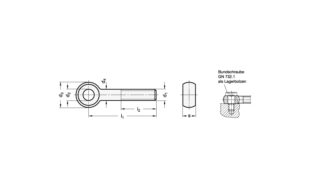 Als Lagerbolzen können bei den Größen M 6, M 8, M 10 und M 12 Bundschrauben GN 732.1 eingesetzt werden.