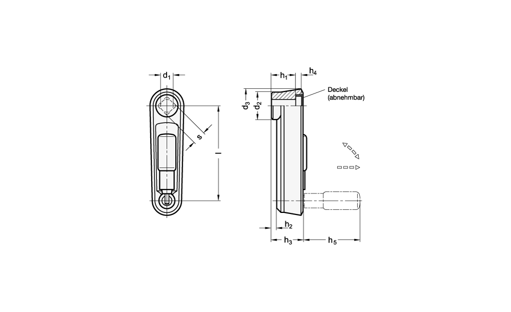 Bei Umleggriff-Handkurbeln GN 472.5 ist der Griff in der Bedienstellung in einer konischen Bohrung arretiert.
