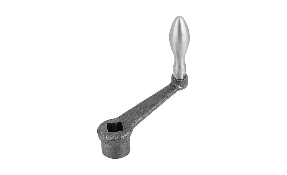 HANDKURBEL GERADE ÄHNLICH DIN469, INNENVIERKANT SW=17+0,3, A=125, H=120, FORM:D MIT DREHBAREM GRIFF, GRAUGUSS