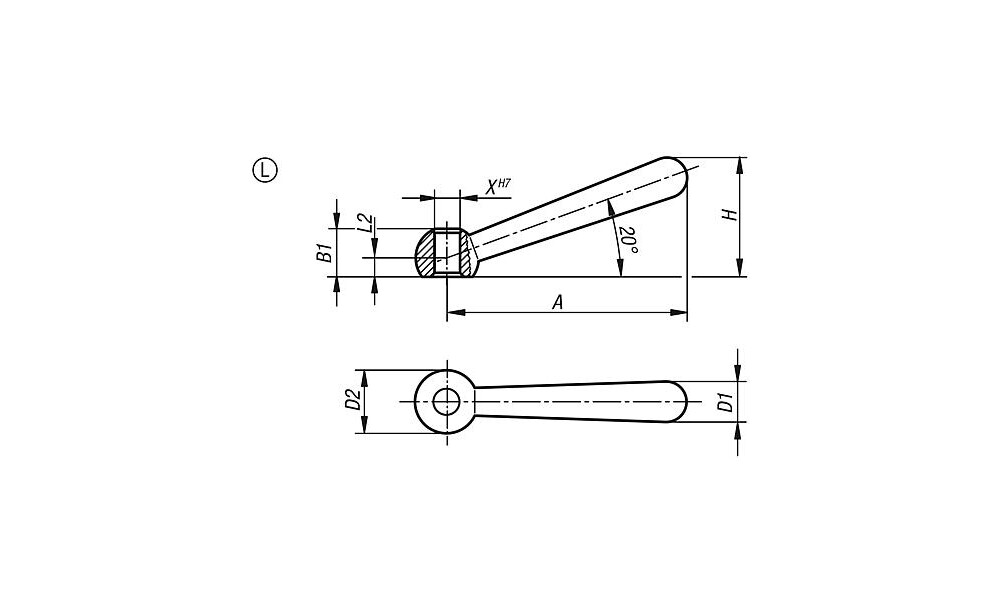 KEGELGRIFF DIN99, FORM:L, A=152 STAHL, X=20