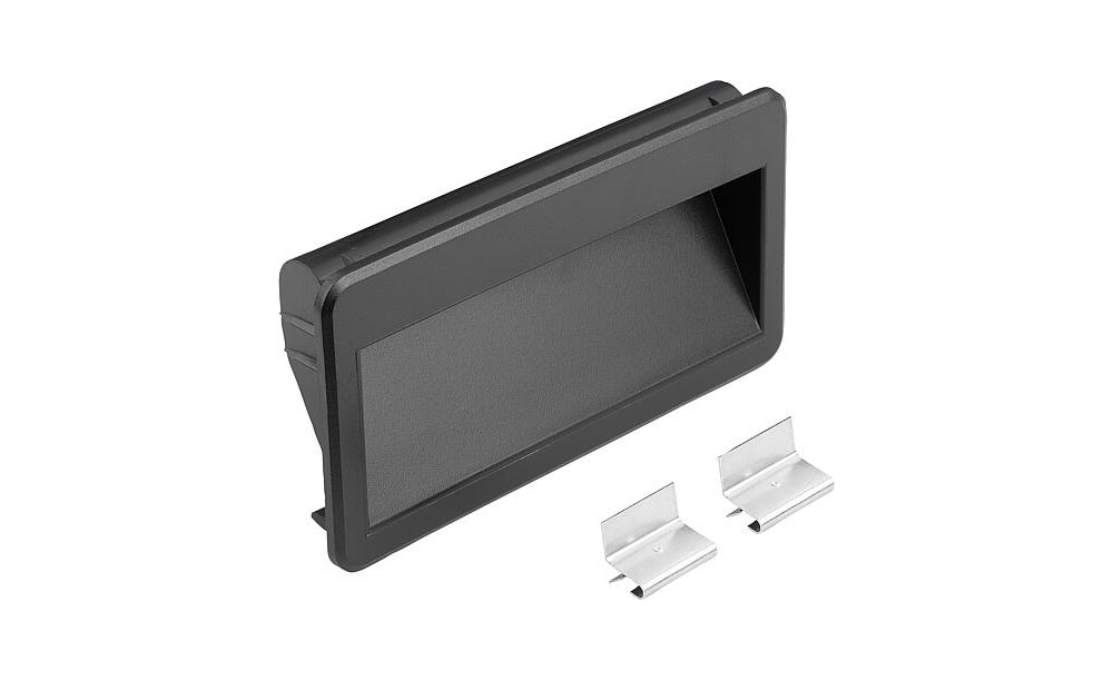 Die ergonomische Form der Schalengriffe eignet sich optimal für Geräte und Gehäuse. Die Montage erfolgt durch Eindrücken und Klemmung in der Montageöffnung. Werkstoff: Thermoplast (ABS). Ausführung: schwarz. Bestellbeispiel: K1077.1101 Hinweis: Dieser Griff kann bei einer Wandstärke von 0,75 bis 1,5 mm verwendet werden. Die Haltekraft beträgt in Stahl und Blechgehäusen 750 N pro Paar. Bei K1077.1101 erfolgt die Lieferung einschließlich Federklammern zur Montage an der Gehäuseinnenwand.