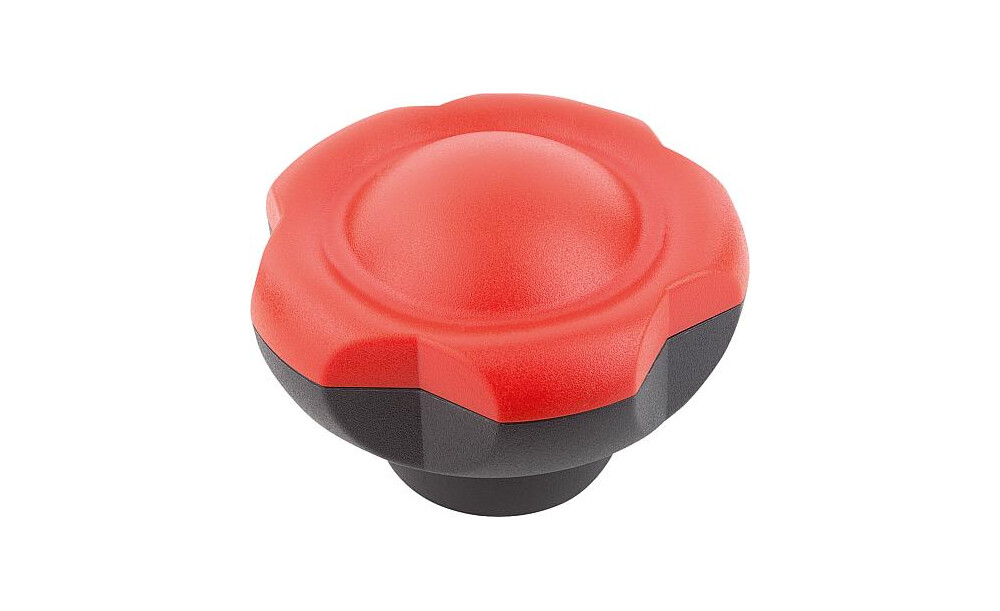 FÜNFSTERNGRIFF D1=50 D=M12 H=34,8, FORM:K, THERMOPLAST SCHWARZGRAU RAL7021, KOMP:STAHL, DECKEL:ROT RAL3020