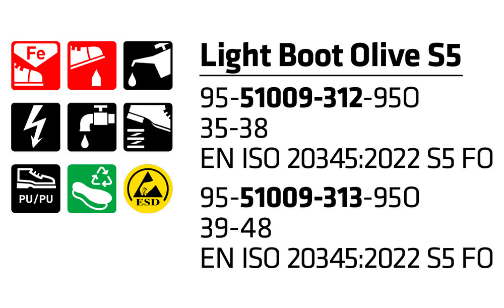 SIEVI Sicherheits-Gummistiefel LIGHT BOOT OLIVE S5 Größe 38