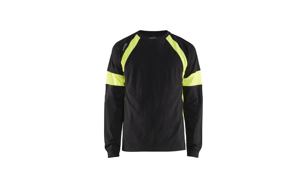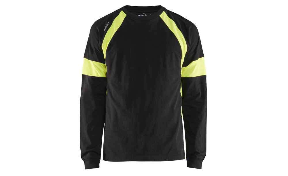 Langarm Shirt aus Baumwolle mit gelben High Vis Einsätzen um eine gute Sichtbarkeit zu gewährleisten.
