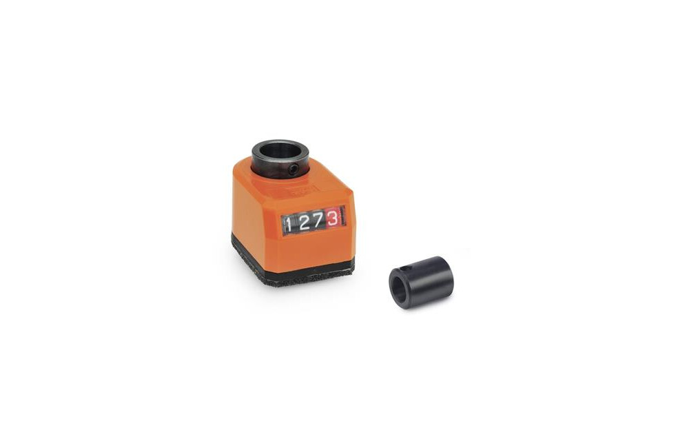 Stellungsanzeiger GN 9534 sind für den Anbau an konfigurierbaren Lineareinheiten vorgesehen. Sie werden mithilfe einer Reduzierbuchse und einem Gewindestift auf den Spindelzapfen der Lineareinheit montiert. Das direkt angetriebene Zählwerk mit digitaler Positionsangabe ist auf die Steigung der Gewindespindel abgestimmt.