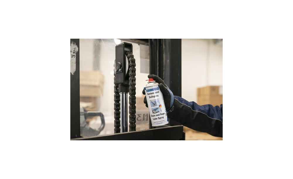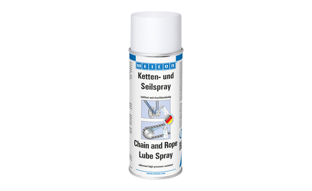 WEICON Ketten- und Seilspray ist ein synthetischer, transparenter Haftschmierstoff für die dauerhafte Innen- und Außenschmierung von hochbeanspruchten Ketten und Drahtseilen aller Art.